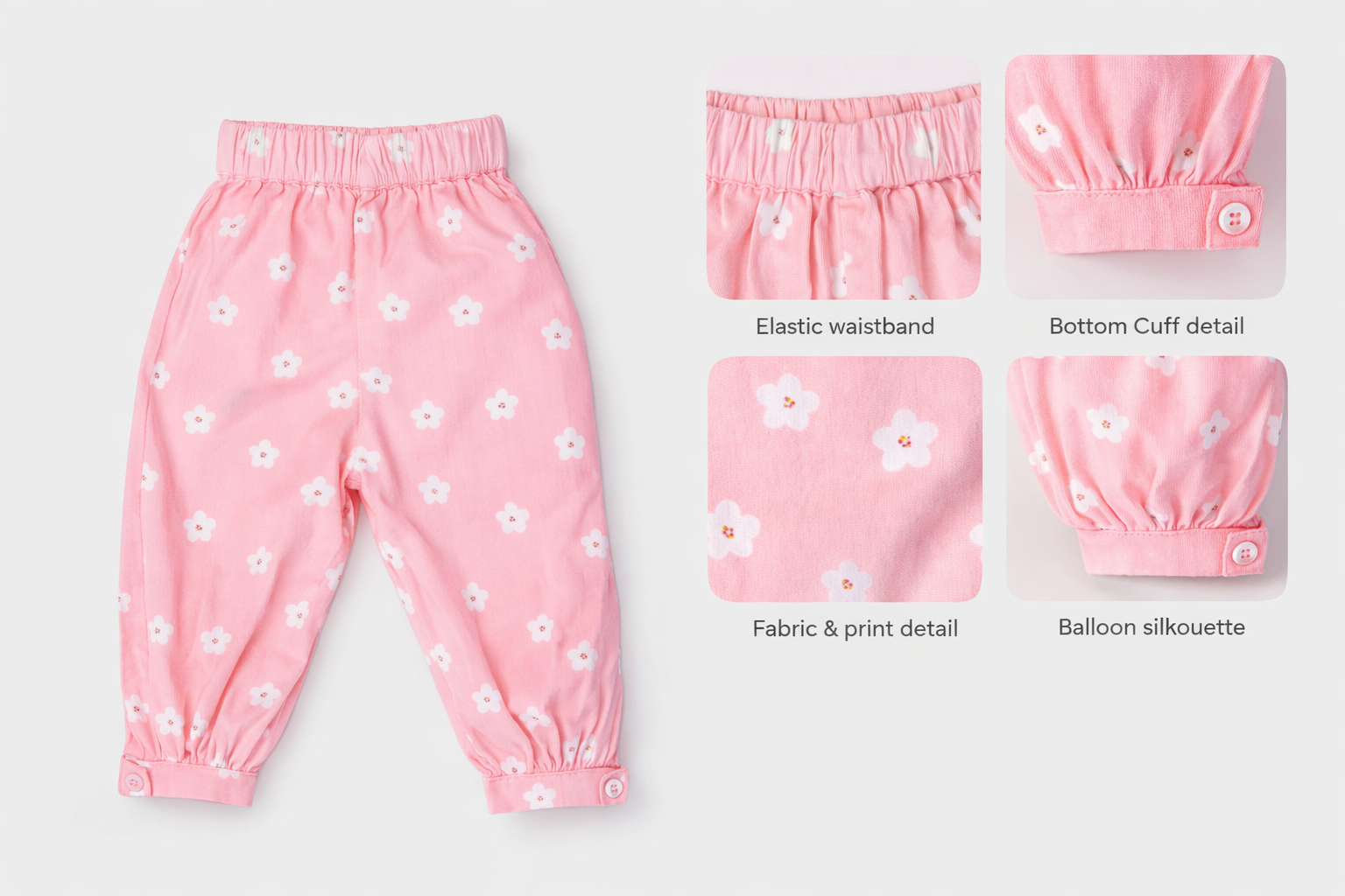 Brighten up your little kids wardrobe with something stylish this season. This trendy pant provides utmost comfort which will keep your kid super cool. Buttons at the bottom for gripping. Soft elastic is there for easy grip at the waist.